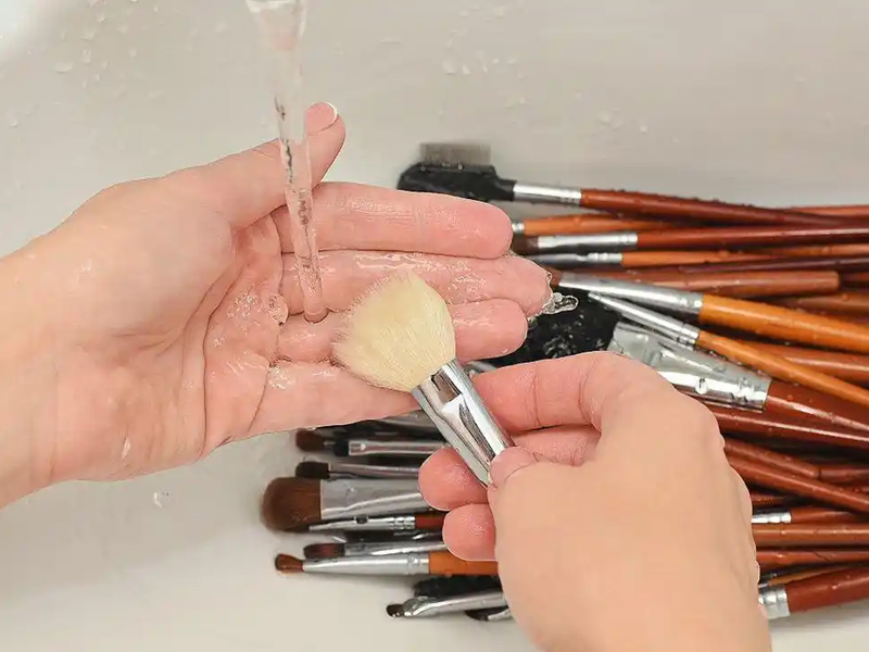 ขอแนะนำให้ทำความสะอาดแปรงแต่งหน้าสัปดาห์ละครั้งหรือสองครั้งเพื่อกล่าวคำอำลากับความเสียหายที่เกิดจากมลพิษระดับรองของแปรงแต่งหน้ากับผิวหนัง